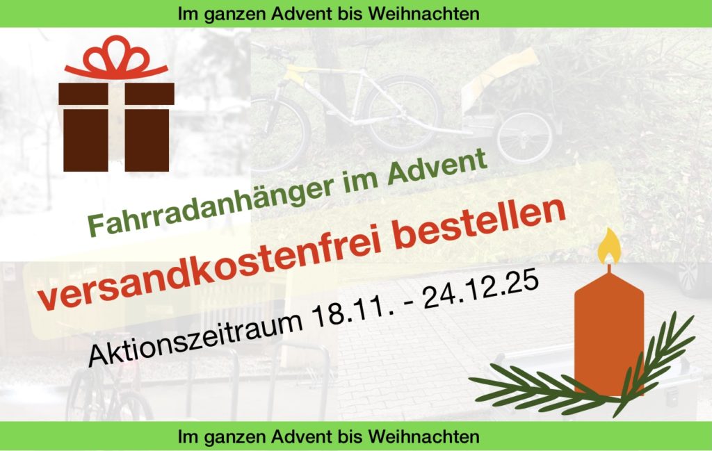 Versandkostenfreie Lieferung bis zum 24.12.2025 bei Bestellung eines Fahrradanhängers